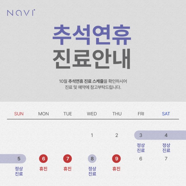 10월 추석연휴 진료일정 안내